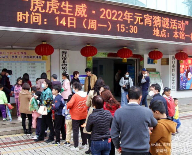 元宵佳节赏花灯、猜灯谜是我国的传统习俗,在2月14日元宵节前夕组织,遵照海口市旅游和文化广电局的工作指示,海口市群众艺术馆主办了我们的传统节日主题系列活动——“虎虎生威•2022年元宵猜灯谜活动”,邀请往来市民朋友踊跃参与。