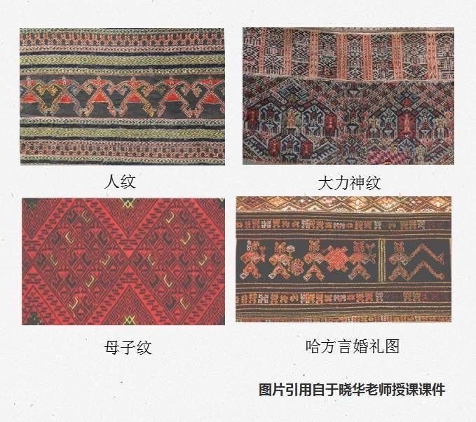 于老师向大家介绍:黎族各方言区以不同的服饰为族群标志,主要有哈方言、杞方言、润方言、赛方言及美孚方言等5种服饰,每种服饰各具特色。在黎族服饰的团中,运用直线、平行线、方形、三角形等元素,形成了特殊的“人纹”“大力神纹”“母子文”等图案,具有丰富的文化意义,在制作时也大量运用了“织”“绣”等技巧。