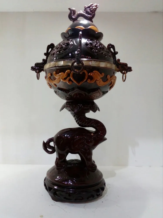 海南椰雕的雕刻手法有平面浮雕、圆雕、通花浮雕,还有带棕立体雕刻和贝壳镶嵌雕刻等。